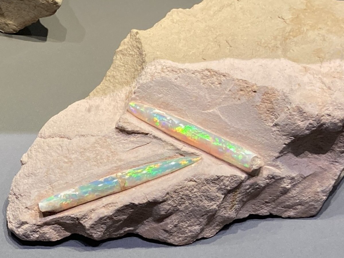 こちらはそのアラゴナイトの部分が、約3500万年前にオパールへと化石化したもの。